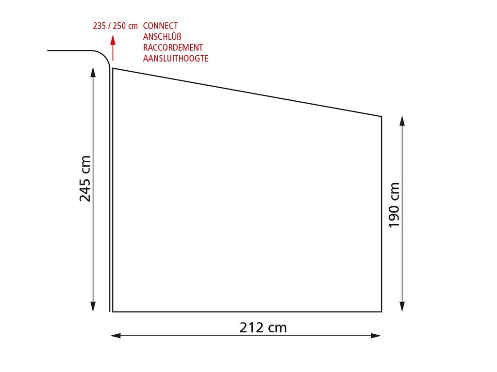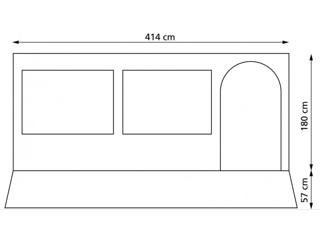 - Přední stěna: 414 cm (délka) x 180 + 57 cm (dešťový límec)