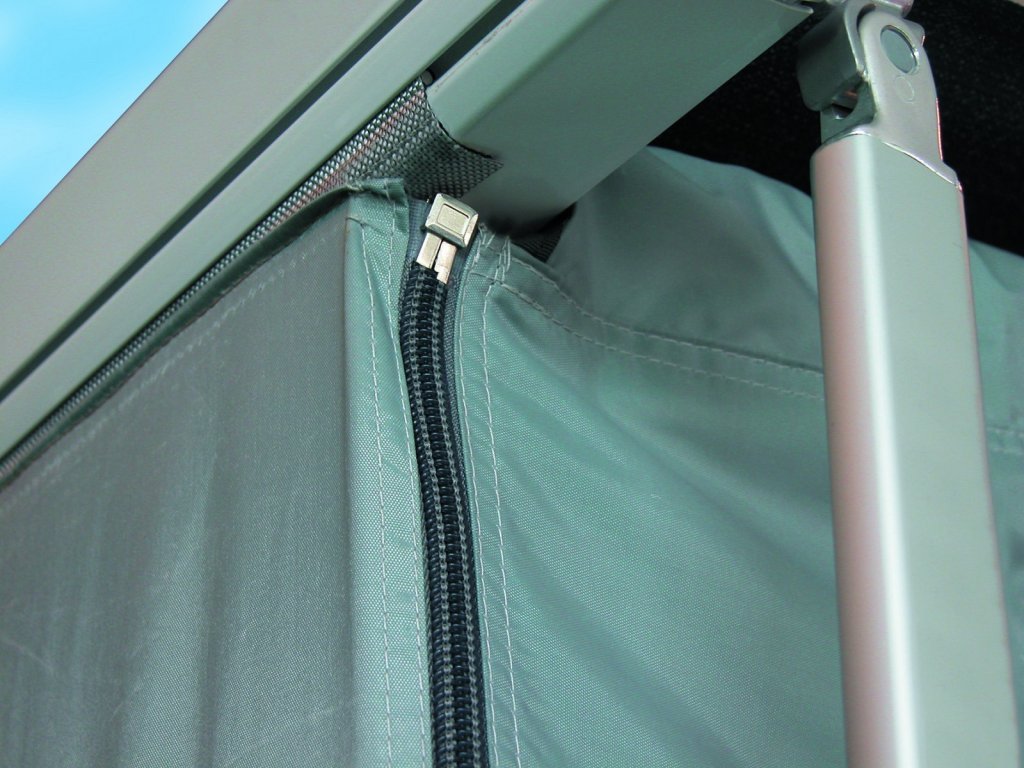 Přední a boční díly lze spojit pomocí zipu. Přední díl je uchycen do lišty v předním těle markýzy, boční díly je nutno zavěsit na rozpěrnou tyč (ETSP0543 – nutno dokoupit – viz doplňující zboží), která se rozepře mezi přední a zadní díl markýzy. Pomocí suchých zipů se rohy předstanu uchytí k podpěrám markýzy.