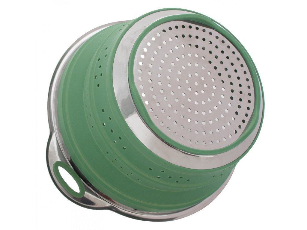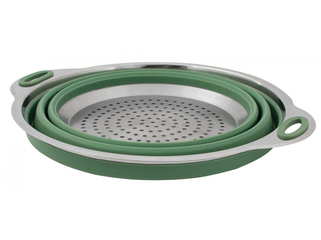 Praktické skladování: Díky skládacímu designu můžete cedník složit na minimální velikost, což umožňuje snadné uskladnění v omezeném prostoru. To je ideální pro kempaře, cestovatele nebo pro každého, kdo potřebuje kompaktní nádobí pro přípravu jídla.