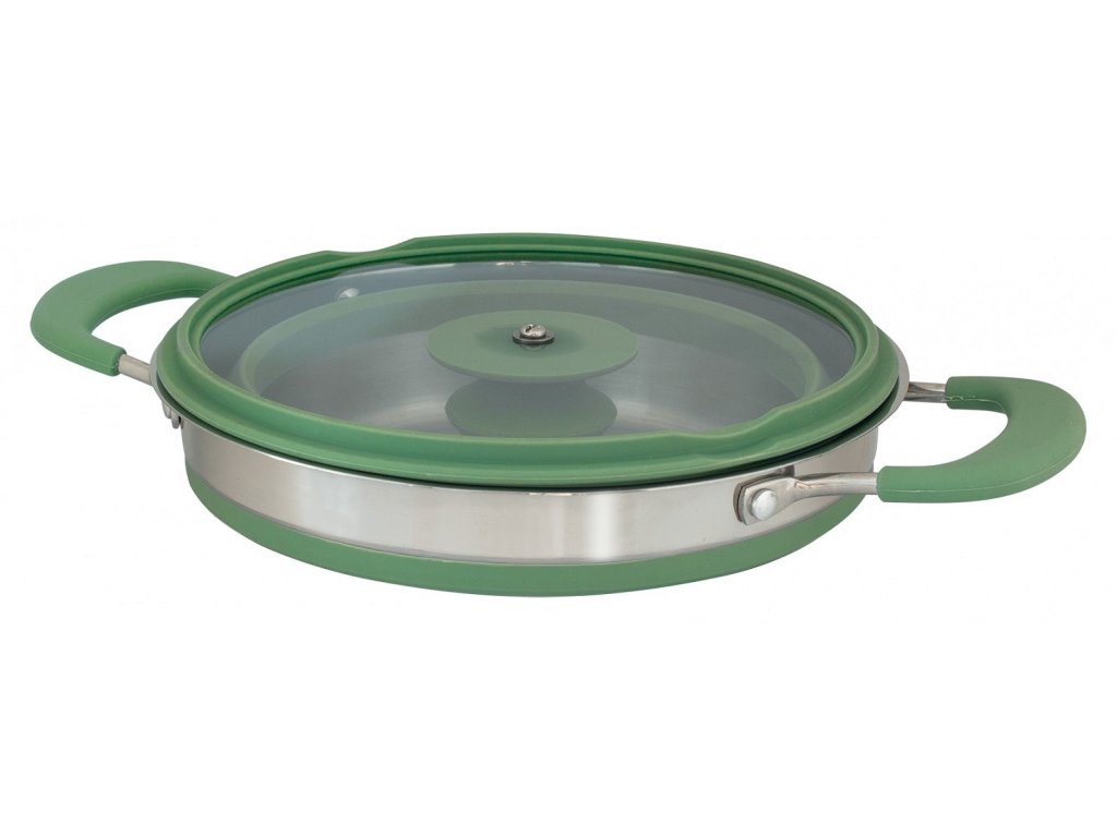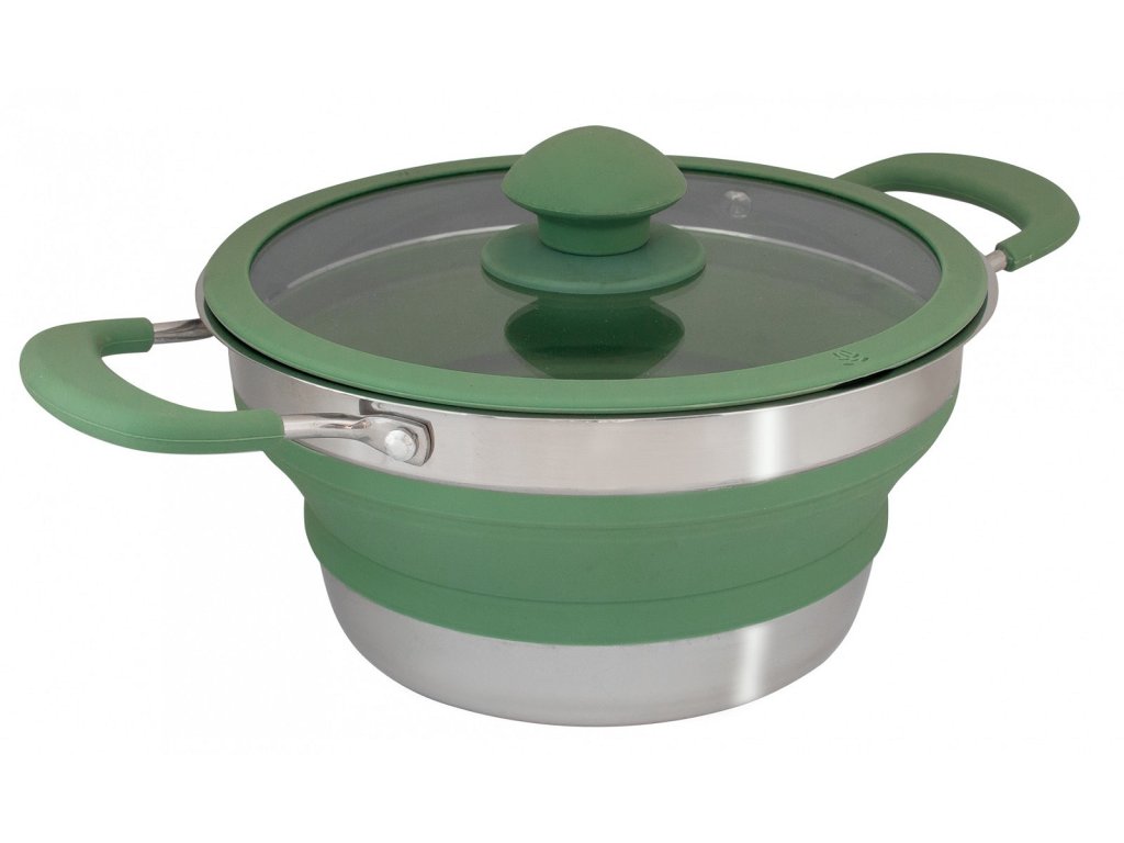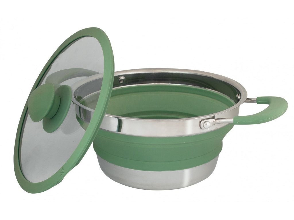 Barvy pro každý vkus: Tento skládací hrnec je k dispozici v atraktivních barvách – šedé a světle zelené, které zapadnou do jakéhokoliv outdoorového vybavení a dodají vaší výbavě styl.