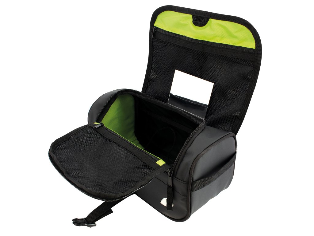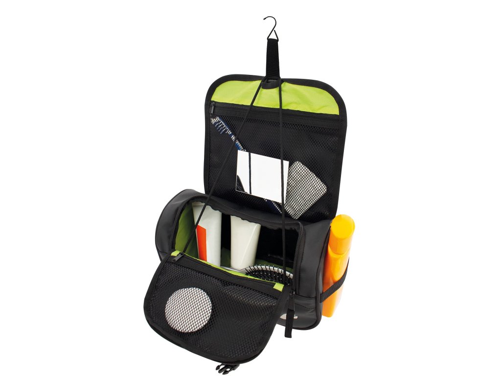 Taška je vybavena praktickým háčkem, který umožňuje její snadné pověšení na jakýkoli vhodný háček nebo kliku, což je skvélé zejména při cestování nebo v malých hotelových koupelnách. Dále je součástí i zrcátko, které usnadňuje aplikaci kosmetiky, aniž byste museli hledat jiné vhodné zrcadlo.