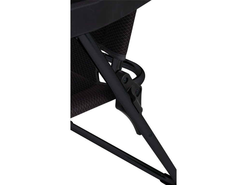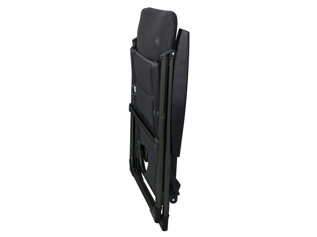 Konstrukce křesla je velmi stabilní a robustní, což zajišťuje jeho bezpečné používání i na různých typech terénu. Křeslo je vybaveno hliníkovým rámem, který je nejen lehký, ale zároveň dostatečně pevný, aby odolal různým povětrnostním podmínkám. Unikátní konstrukce s spojenou částí na zemi zabraňuje tomu, aby se křeslo bořilo do měkkého terénu, což je ideální pro kempování nebo použití na trávníku, písku nebo v lese. Křeslo tak zůstává stabilní i na měkkém podkladu.