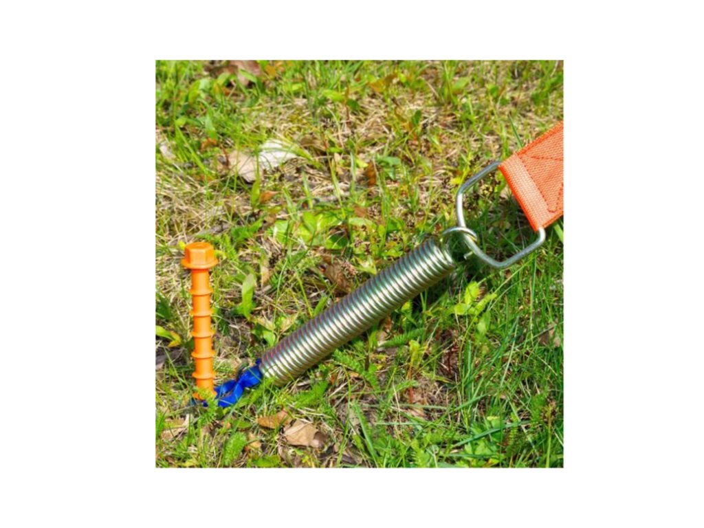 Upevňovací popruh s pružinou – tento popruh se používá pro pojištění markýzy, přístřešku či stanu před větrem.