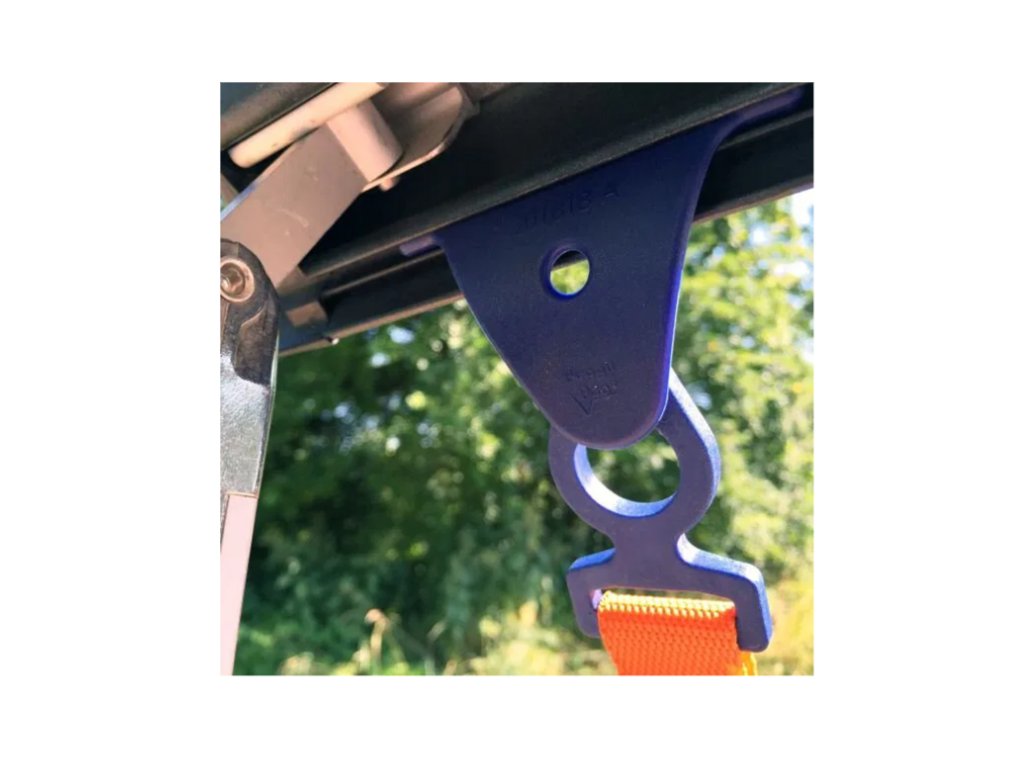 Praktická svorka na upevnění plachtoviny s kolíkem nebo popruhem.