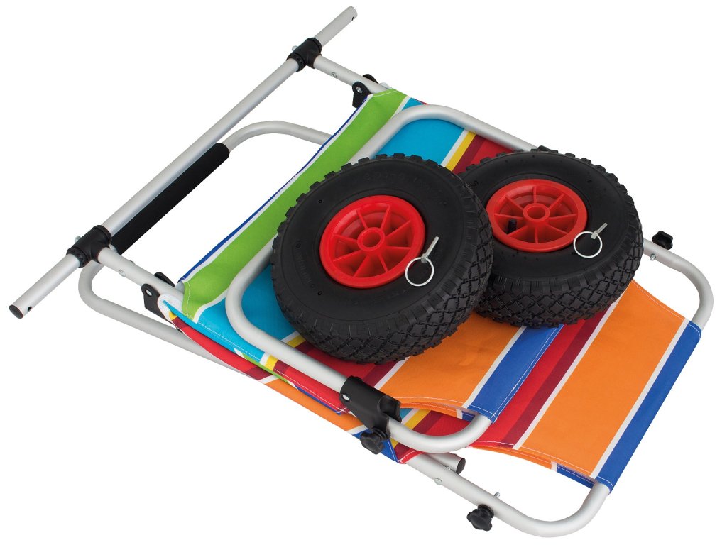 Vozík je vybaven nafukovacími koly, které zajistí pohodlnou jízdu i po písečném terénu nebo nerovnostech, což je ideální pro použití na pláži nebo při přesunech v přírodě. Jeho lehkou konstrukci oceníte při každodenním použití, kdy je třeba převážet těžké předměty. A co víc – vozík se dá velmi dobře složit a nezabere mnoho místa, což oceníte, když ho budete potřebovat uložit do auta nebo uschovat mezi použitími.