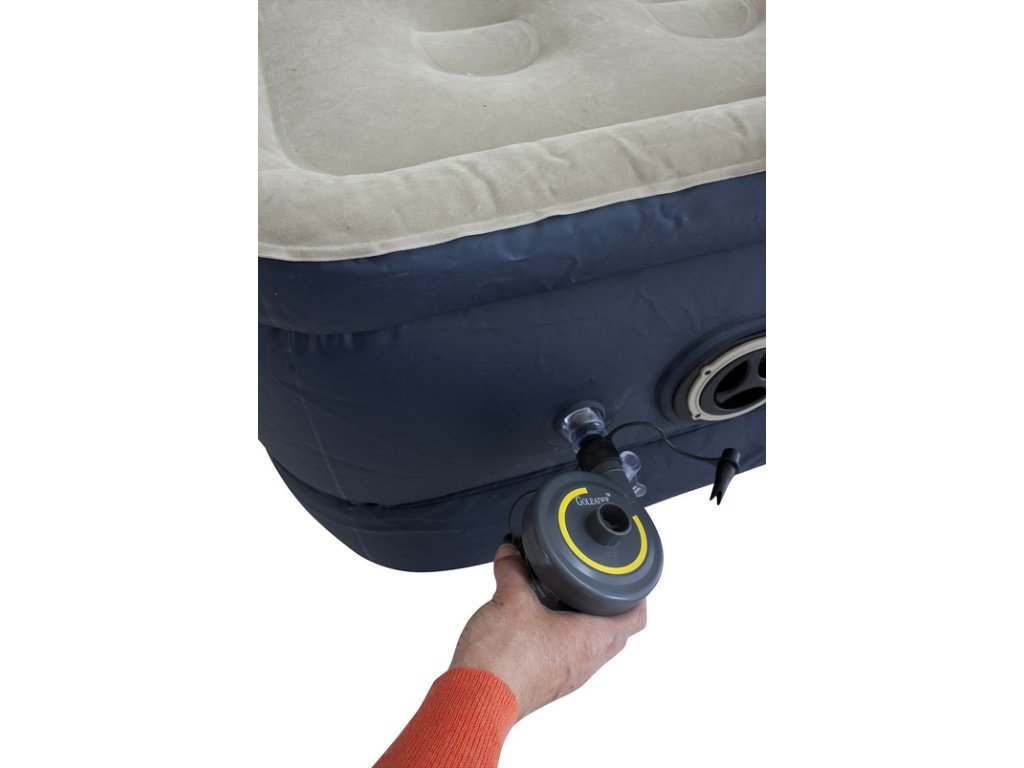Jednoduché použití s minimálním úsilím: Elektrická nafukovací pumpa je navržena tak, aby šetřila vaši námahu. Stačí ji jednoduše připojit do standardní zásuvky 230V, stisknout tlačítko a pumpa začne automaticky nafukovat vaši matraci nebo lehátko. Tato automatizovaná funkce zajišťuje rychlé a pohodlné nafukování bez zbytečného fyzického úsilí.
