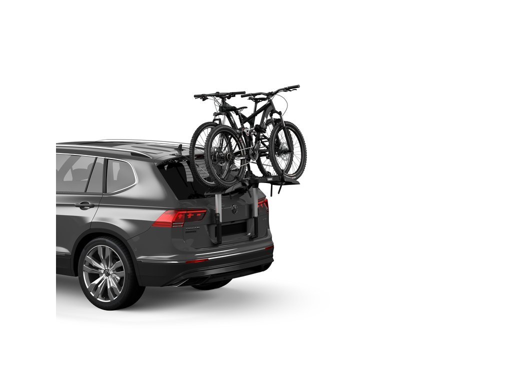 Prémiový nosič na 2 jízdní kola na zadní dveře. Thule OutWay Platform 2 má vyvýšenou plošinu a díky tomu není omezený výhled na SPZ a zadní světla. Nosič je vhodný pro širokou škálu vozidel jako sedan, kombi, CUV a SUV včetně vozidel se zadním spojlerem.
