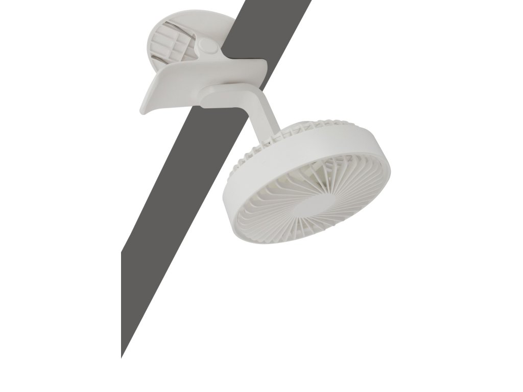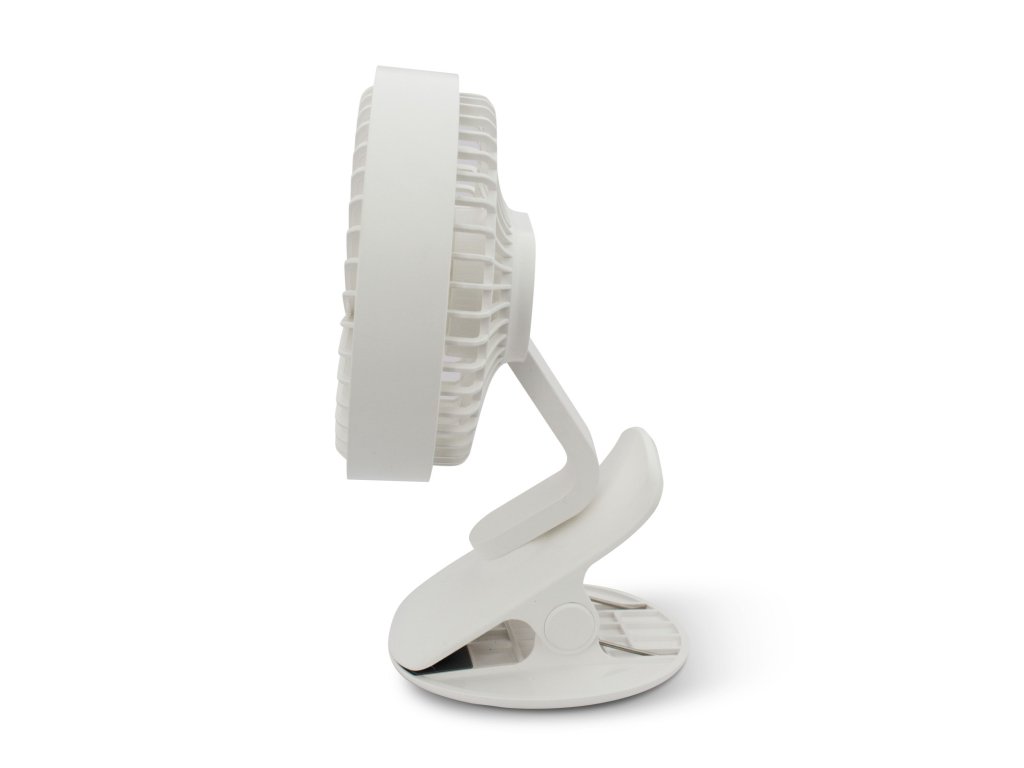 Připojitelný kdekoliv díky svorce: Díky praktické svorce je ventilátor snadno připevnitelný na stoly, poličky, okraje postelí, stany nebo jiné povrchy. Tato univerzálnost dává ventilátoru široké možnosti použití a činí jej ideálním i pro mobilní použití, například při kempování, cestování, nebo v místech, kde není možné umístit tradiční stojanový ventilátor.