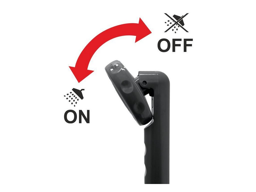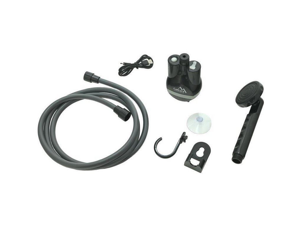 Součástí je také praktická sprchová hlavice s možností zastavení průtoku sklopením, kterou lze zavěsit na háček nebo připevnit přísavkou dle aktuálních podmínek. Propojení čerpadla a hlavice zajišťuje 2metrová gumová hadice se šroubovacími koncovkami a těsněním.