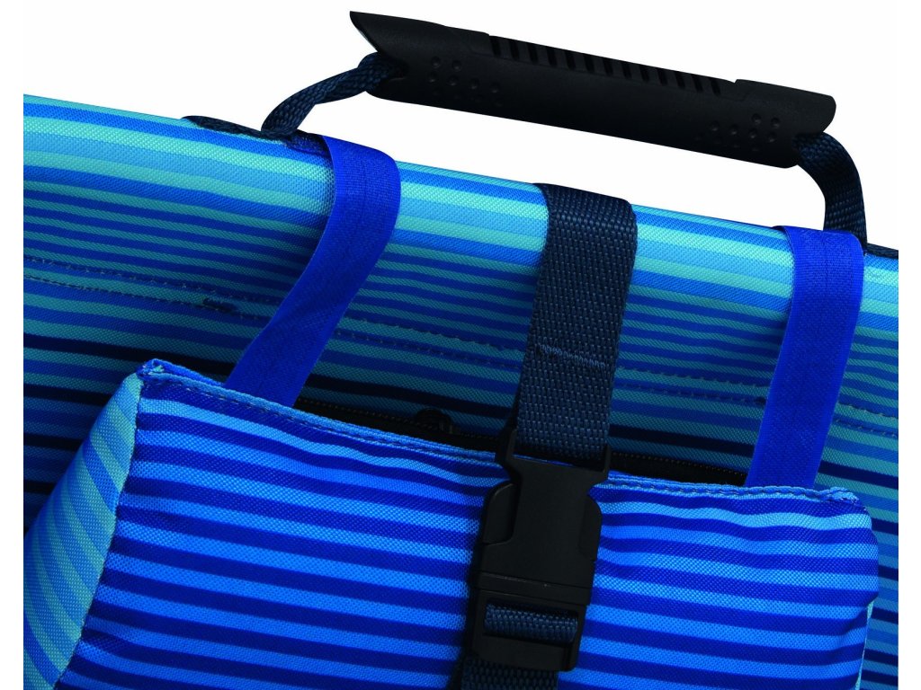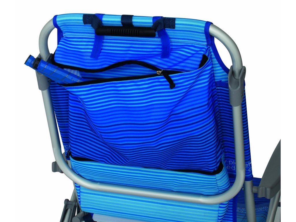 Sedák plážového křesla má ideální rozměry 49 x 44 cm a je umístěn nízko u země (23 cm), což zajišťuje pohodlné sezení, které je zároveň stabilní. Díky tomuto nízkému profilu je křeslo ideální pro relaxaci na pláži nebo na trávníku, a přitom vám nebrání v pohodlném pohledu na moře nebo oblíbený sportovní zápas. Křeslo je navíc vybaveno praktickými úložnými prostory – velkým úložným prostorem na zip na zadní straně a boční taškou, které vám umožní uložit osobní věci, ručníky, knihy nebo sluneční krémy.