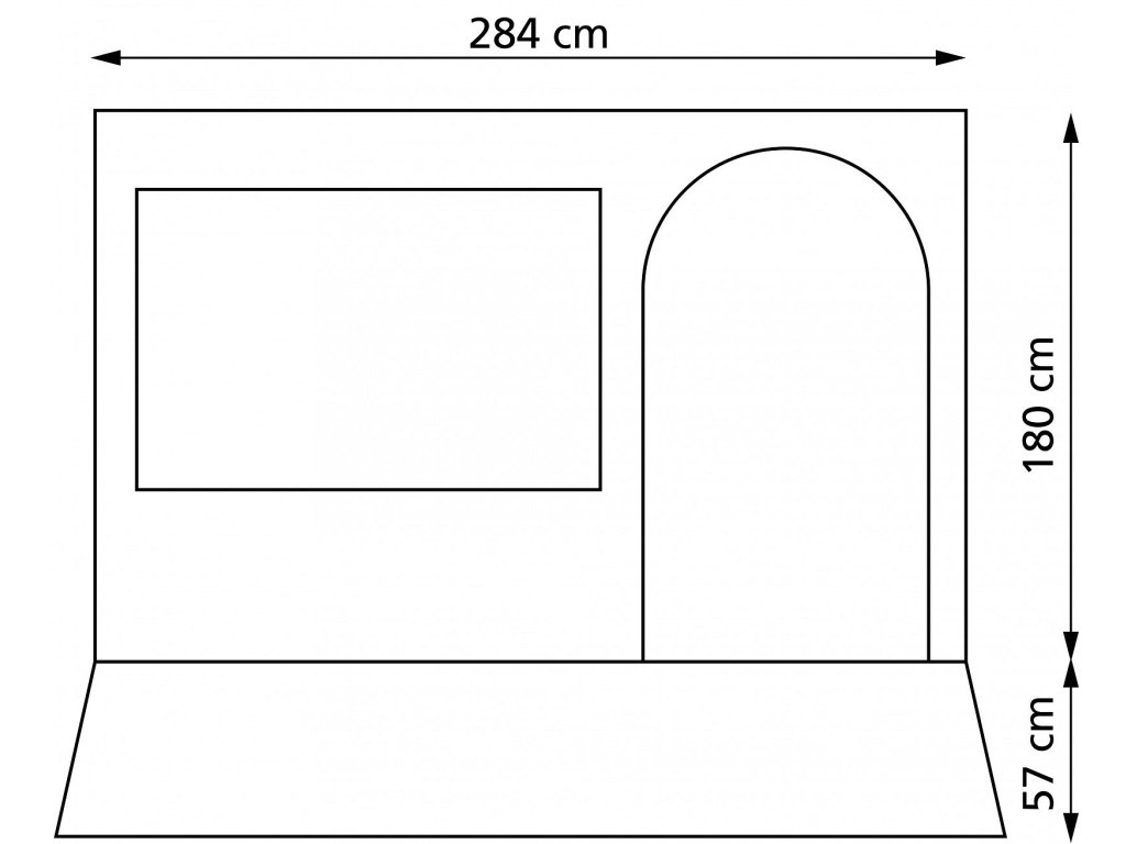 - Přední stěna: 284 cm (délka) x 180 + 57 cm (dešťový límec)