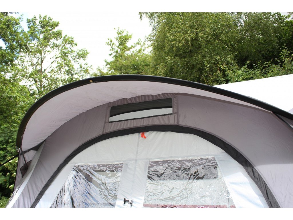 Po nafouknutí předstanu stačí vypustit stan dopředu a vytvoříte prostor, který je připraven k okamžitému použití. Boční stěny jsou flexibilní a lze je otevřít, čímž se z obou stran vytvoří vchody, které jsou vybaveny síťovinou, takže vám neunikne žádný čerstvý vzduch a stan zůstane dobře větraný. Ventilační prvky nad předním vchodem zajistí cirkulaci vzduchu a příjemný pocit i během teplých letních dnů. Když potřebujete více prostoru nebo slunečního svitu, přední stěnu lze zcela odejmout a stan tak může sloužit jako praktický přístřešek proti slunci.