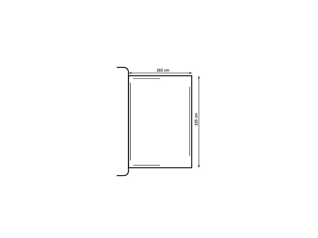 - Rozměry (délka x hloubka): 325 cm x 265 cm