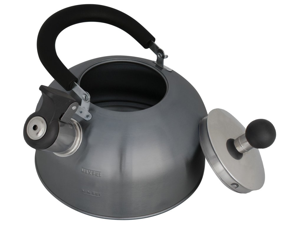- Funkce: Pískání při dosažení varu, tepelně odolná rukojeť a knoflík
