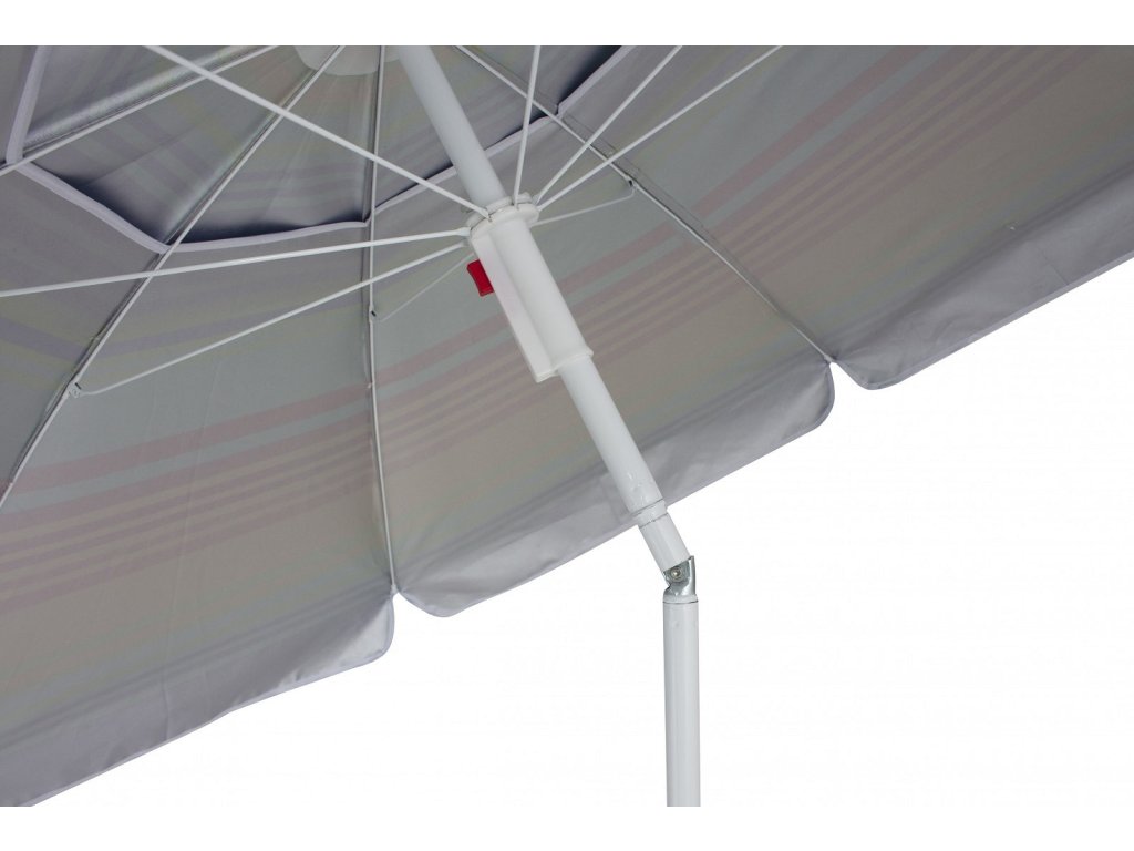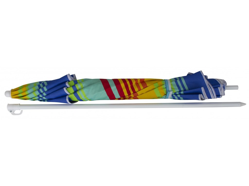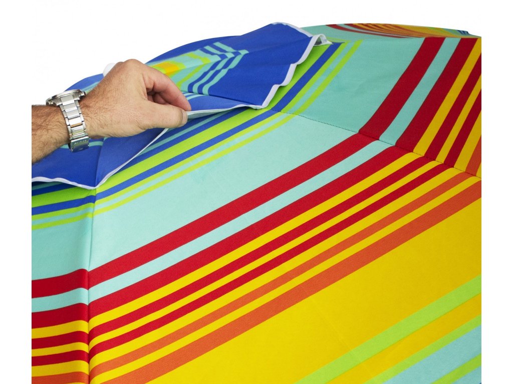 Slunečník je k dispozici v atraktivním designu s barevnými pruhy, který přidává na eleganci a oživí jakýkoliv venkovní prostor. Ať už se rozhodnete pro jeho použití na pláži, zahradní párty nebo na balkóně, tento slunečník zaručeně přitáhne pozornost a stane se skvělým doplňkem každého venkovního posezení.