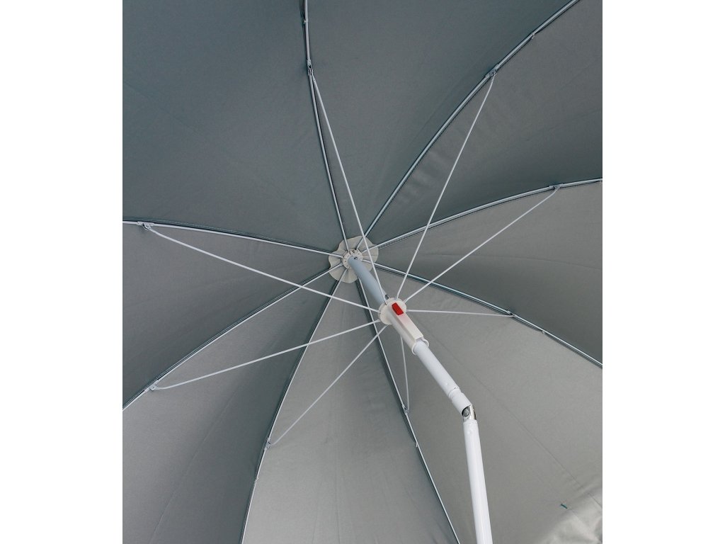 Slunečník má ideální rozměry pro různé venkovní aktivity. Průměr slunečníku je 180 cm, což poskytuje dostatek stínu pro více osob. Výška slunečníku je 160 cm, takže se pohodlně vejde i na menší prostory, jako jsou balkony nebo pláže. Po složení se slunečník snadno přenáší díky rozměrům 100 x průměr 6 cm. Dvoudílná ocelová tyč o průměru 19/22 mm je dostatečně stabilní, ale zároveň umožňuje pohodlný transport.