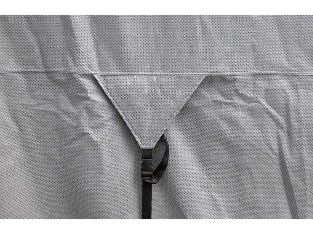 Vysoce kvalitní třívrstvý materiál: Plachta je vyrobena z prodyšného třívrstvého materiálu, který je zároveň voděodpudivý. Tento materiál poskytuje vynikající ochranu proti dešti a sněhu, přičemž stále zajišťuje dostatečnou ventilaci. Díky prodyšnosti se pod plachtou netvoří kondenzát a nedochází k vzniku plísní, což je běžný problém u méně kvalitních materiálů. Tento materiál je šedé barvy, která se hodí ke většině obytných vozů a zároveň pomáhá zamezit nadměrnému zahřívání vozidla na slunci.
