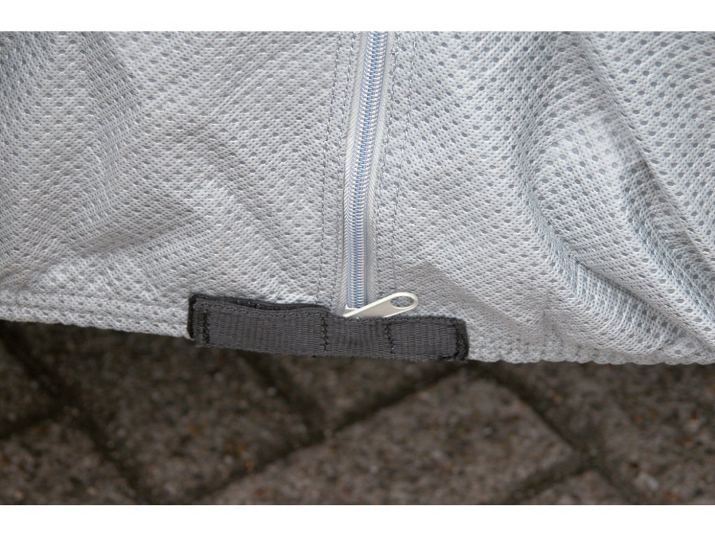 Vysoce kvalitní třívrstvý materiál: Plachta je vyrobena z prodyšného třívrstvého materiálu, který je zároveň voděodpudivý. Tento materiál poskytuje vynikající ochranu proti dešti a sněhu, přičemž stále zajišťuje dostatečnou ventilaci. Díky prodyšnosti se pod plachtou netvoří kondenzát a nedochází k vzniku plísní, což je běžný problém u méně kvalitních materiálů. Tento materiál je šedé barvy, která se hodí ke většině obytných vozů a zároveň pomáhá zamezit nadměrnému zahřívání vozidla na slunci.