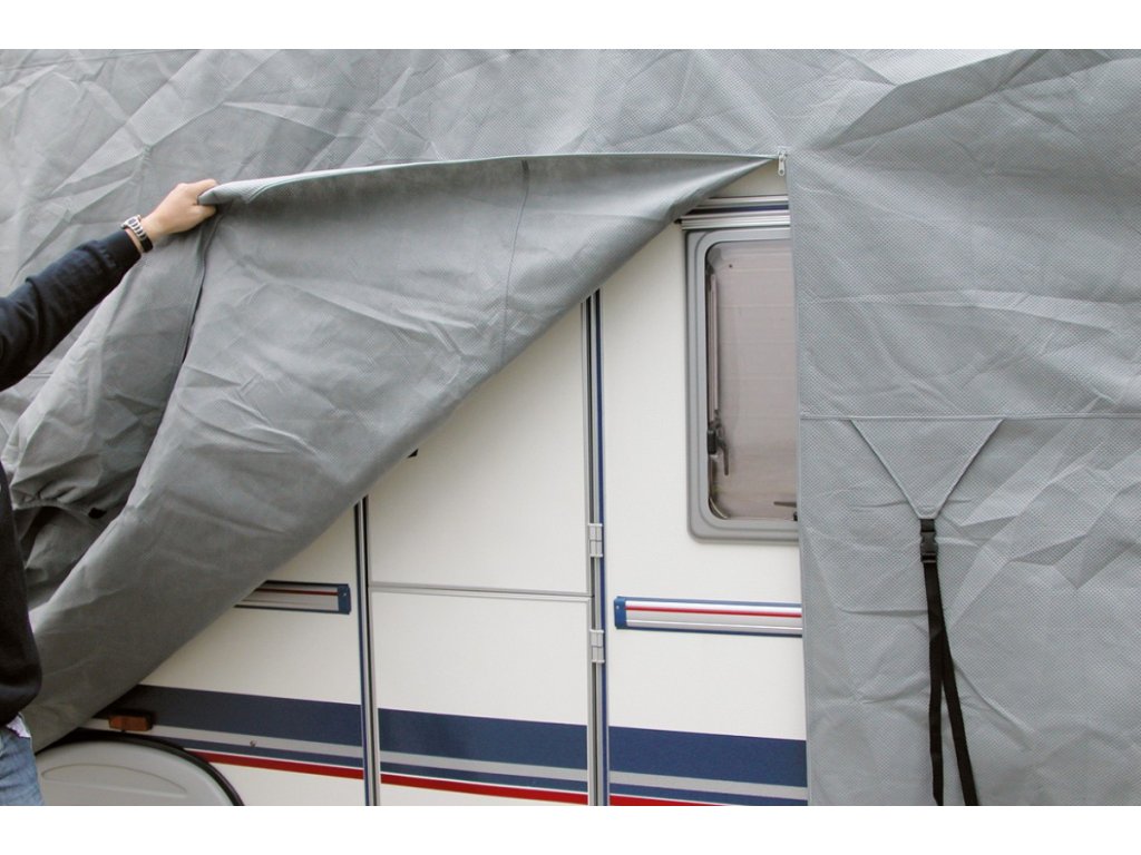 Vynikající ochrana před počasím: Ochranná plachta zajišťuje 100% ochranu proti dešti, sněhu, UV záření, prachu a jiným nepříznivým vlivům počasí. Tento produkt je ideální nejen pro zimní období, ale také pro dlouhodobé parkování mimo sezónu, kdy je karavan vystaven povětrnostním vlivům a nečistotám. Díky šedé barvě plachta ladí s většinou karavanů a dodává vašemu vozidlu elegantní vzhled.
