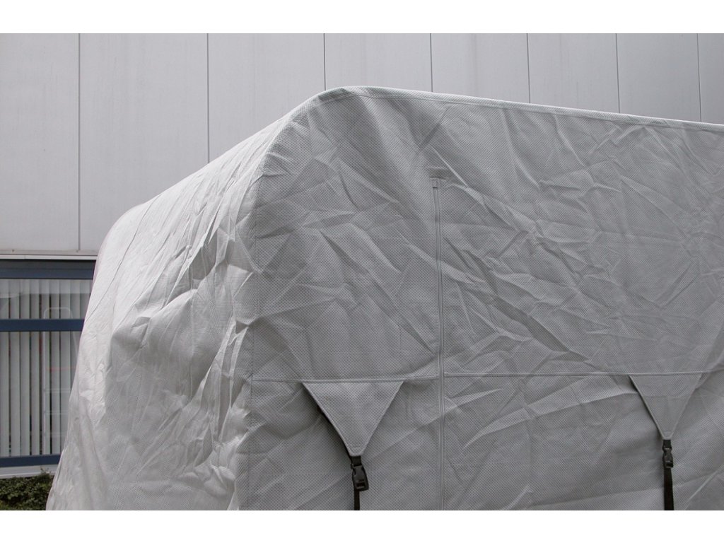Trvanlivý a prodyšný materiál: Plachta je vyrobena z třívrstvého prodyšného materiálu, který efektivně chrání karavan před vlhkostí a deštěm, přičemž zajišťuje optimální ventilaci a zabraňuje vzniku plísní nebo hniloby. Tento materiál je voděodpudivý, což znamená, že chrání karavan před deštěm, sněhem a vlhkostí, aniž by omezoval cirkulaci vzduchu. Díky vrstvení materiálu je plachta zároveň dostatečně pevná, aby odolávala mechanickému poškození a nepříznivým povětrnostním podmínkám.