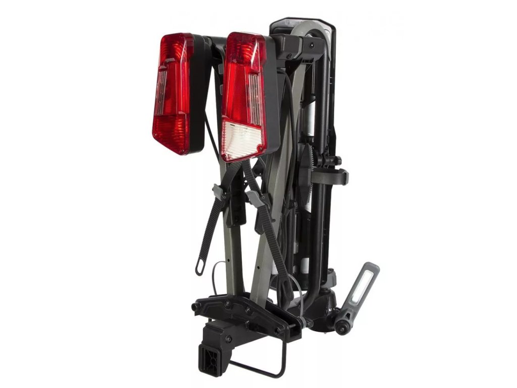Nosič lze složit na kompaktní rozměry, které oceníte při uskladnění nebo přepravě v kufru automobilu. Po složení se nosič zajistí pevnou pojistkou.
