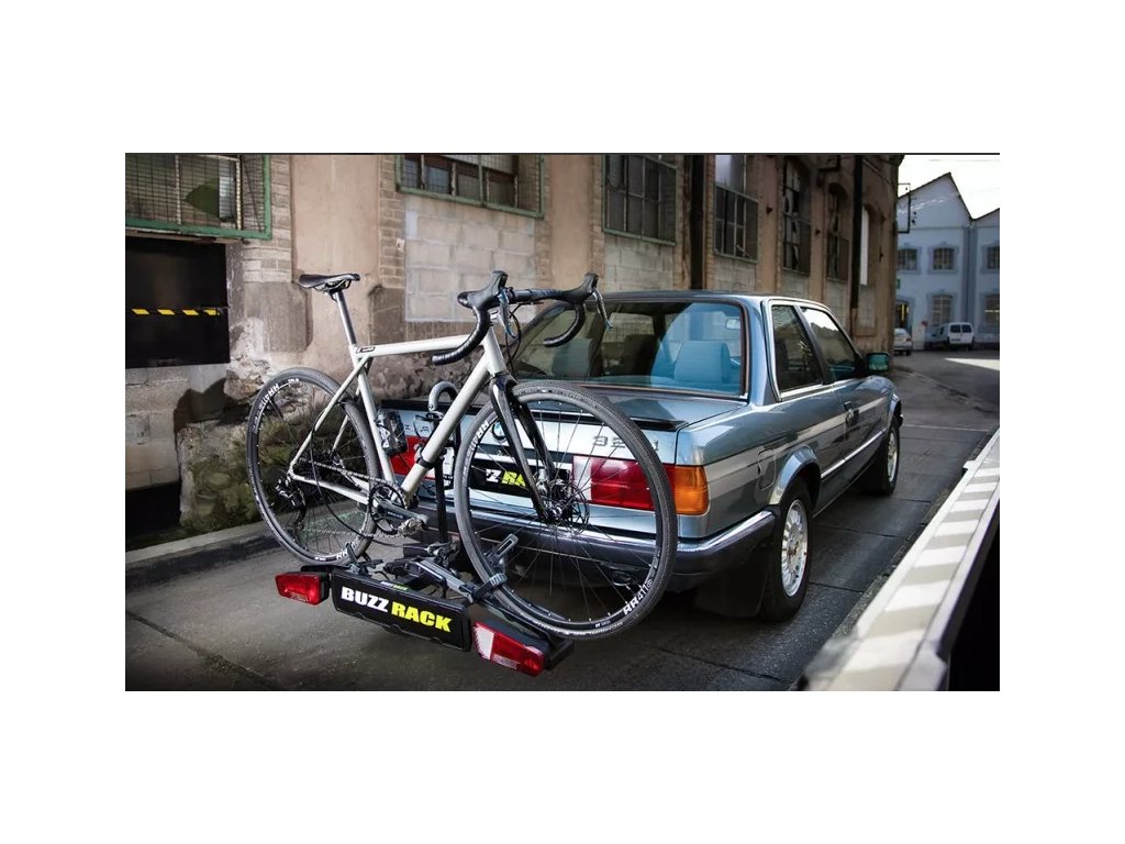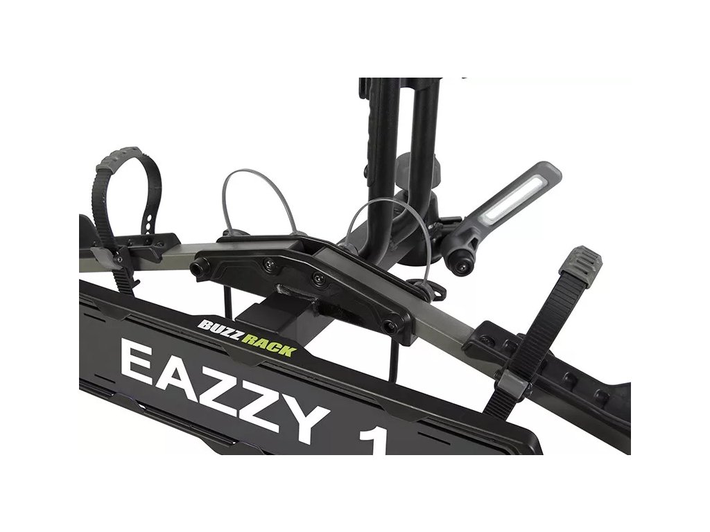 BUZZ EAZZY 1 je určen k přepravě jednoho jízdního kola. Spolehlivý nosič na tažné zařízení se stylovým designem za přijatelnou cenu. Je vybaven plnou světelnou rampou s 13PIN zástrčkou. Namontujete jej na jakékoliv tažné zařízení a poskytuje nosnost 20kg. Maximální hmotnost jednoho jízdního kola je 20kg. Pokud nosič právě nepoužíváte, lze jej poskládat do kompaktních rozměrů.