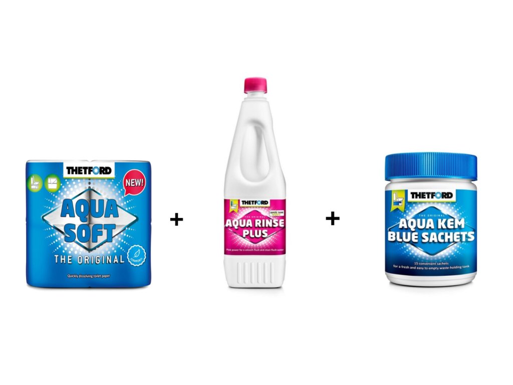 S touto nejprodávanější sadou Thetford získáte vše, co potřebujete pro bezproblémovou údržbu chemických toalet. Aqua Kem Sachets, Aqua Soft Toaletní Papír a Aqua Rinse vám umožní snadno a efektivně udržovat vaši toaletu v perfektním stavu. Ať už jste na cestách, v kempu, nebo v přírodě, tato sada vám poskytne všechny nástroje pro pohodlné a hygienické používání toalety.