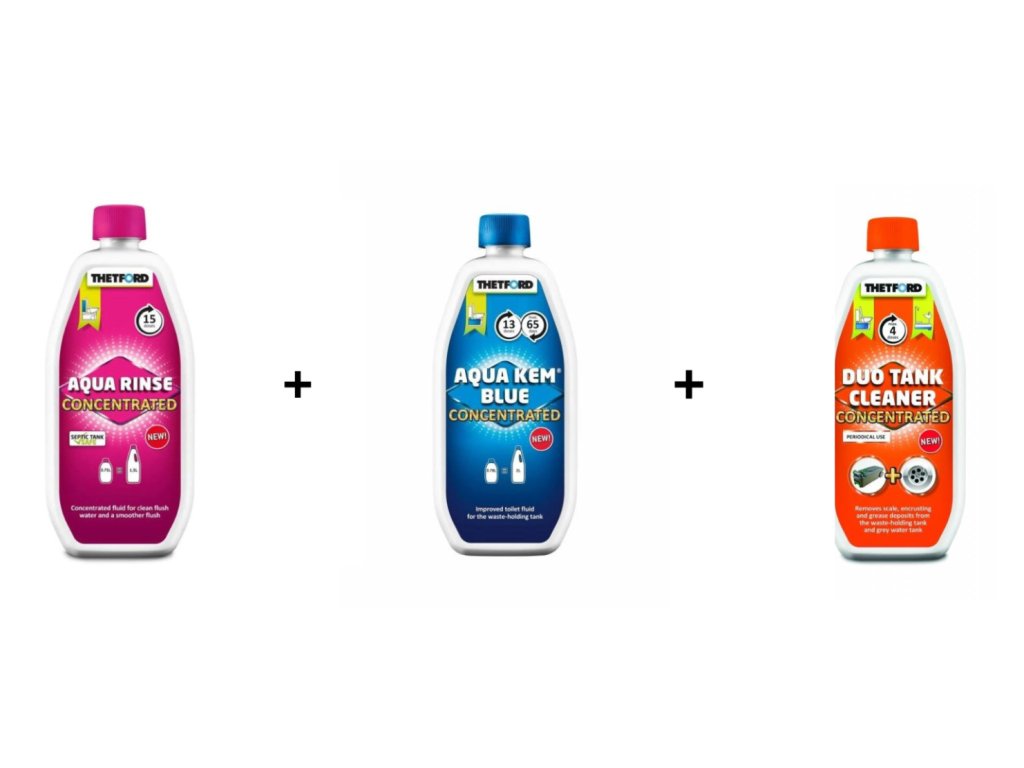 Když přijde na údržbu chemických toalet, pohodlí a efektivita jsou klíčové. Proto jsme pro vás připravili tuto výhodnou sadu Thetford, která zahrnuje koncentrované verze tří nepostradatelných produktů. Jestliže chcete, aby vaše chemická toaleta zůstala v perfektním stavu, bez zápachu a s maximální čerstvostí, máme pro vás ideální řešení!