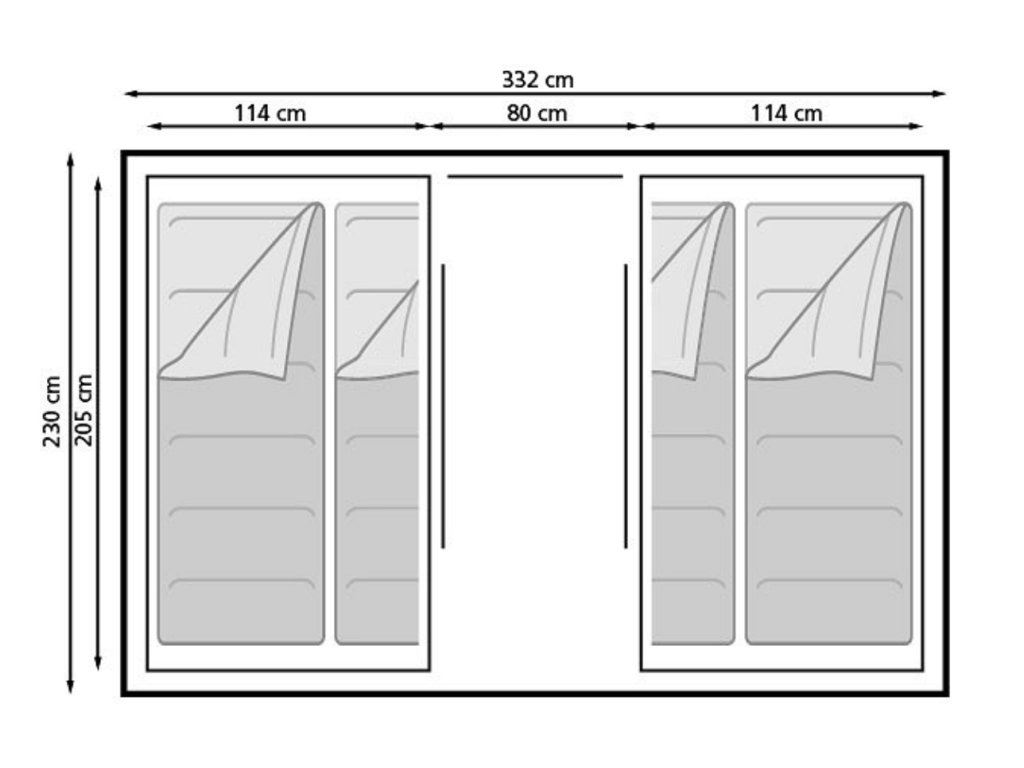 Stan Santiago 120 je ideální volbou pro rodinné kempování nebo výlety s přáteli. Nabízí dvě oddělené ložnice, které poskytují soukromí a komfort až pro 4 osoby. Díky promyšlené konstrukci je stan rychle a jednoduše složitelný, což oceníte zejména při častém přemisťování.