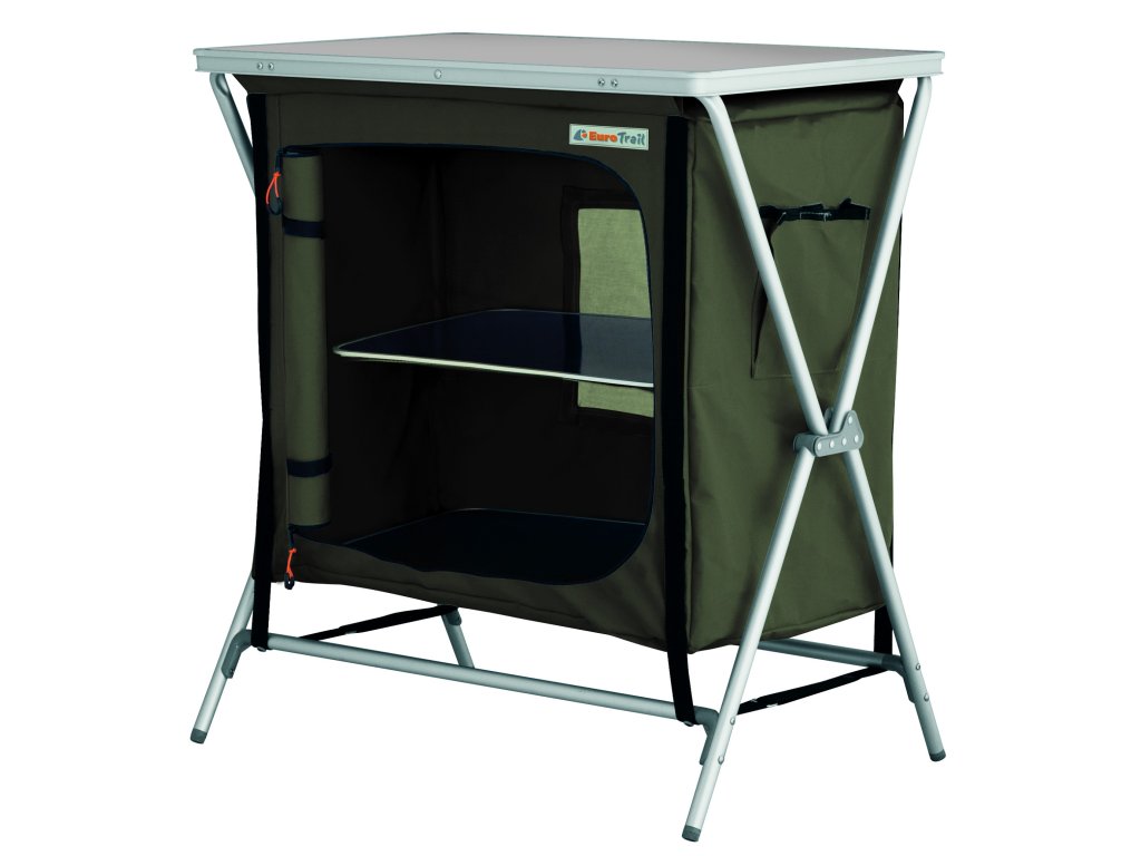 Kempingová skříňka St.Barts je navržena tak, aby vám poskytla dostatek úložného prostoru na všechny vaše kempingové potřeby. Díky praktickému systému ukládacích prostor můžete snadno uspořádat oblečení, kuchyňské náčiní nebo jakékoliv jiné drobnosti. Skříňka může sloužit i jako příruční stoleček vedle vašich kempingových židlí, což vám poskytne další praktickou pracovní plochu pro přípravu jídla nebo odložení potřebných věcí.
