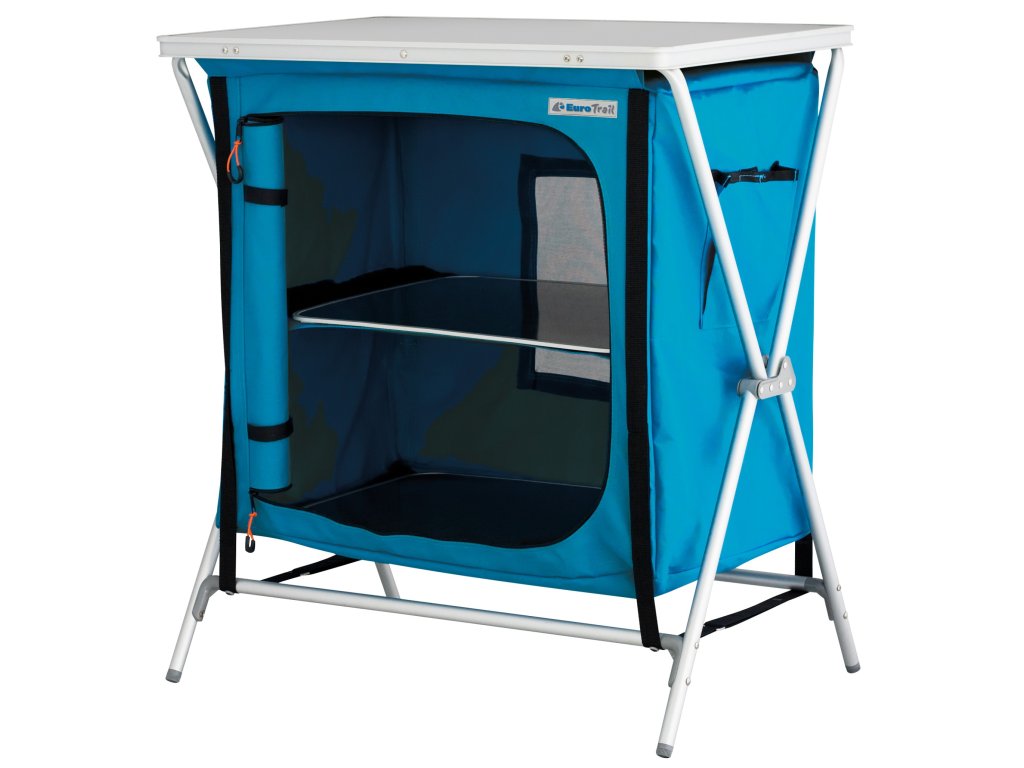 Skříňka St.Barts je vybavena Quick Set-Up Systemem, což znamená, že při sestavování není potřeba složité zasouvání tyčí do plastových rohů. Stačí ji rozložit a zafixovat, poté jen vložit police a máte hotovo. Tento jednoduchý a efektivní systém vám umožní skříňku postavit během několika minut, takže nebudete ztrácet čas s obtížnými montážními kroky, ale můžete se rovnou pustit do vaření, odpočinku nebo jiných kempingových aktivit.