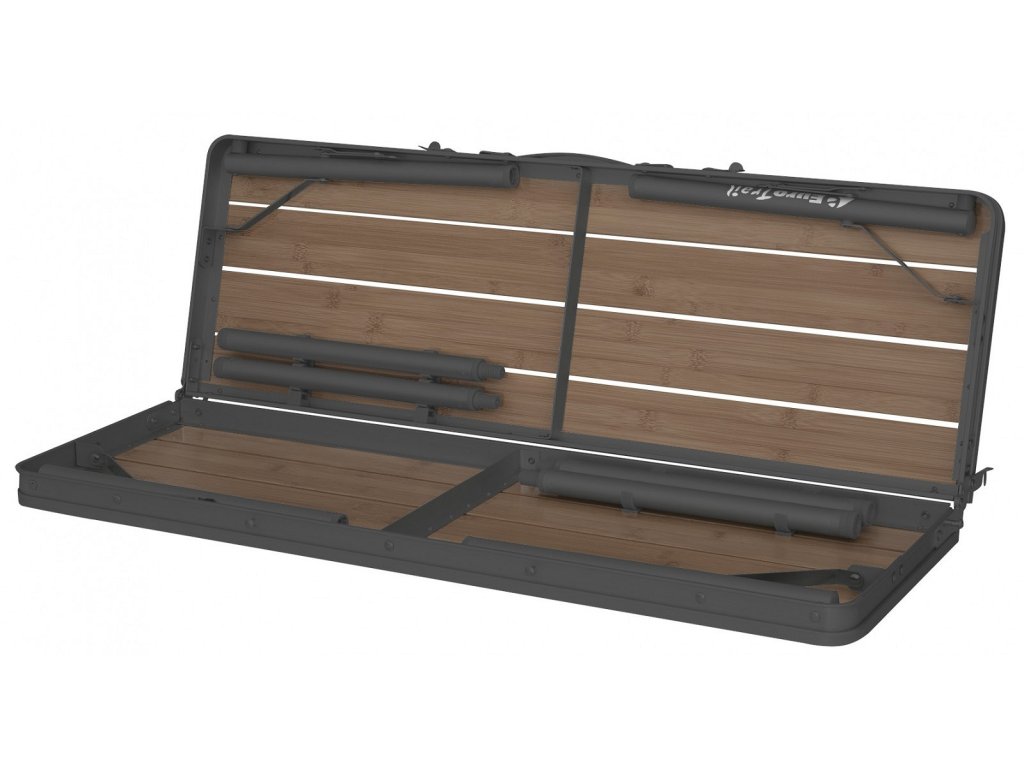 - Kufrový design – Po složení stůl tvoří kompaktní „kufr“, což z něj činí snadno přenosný kus nábytku.