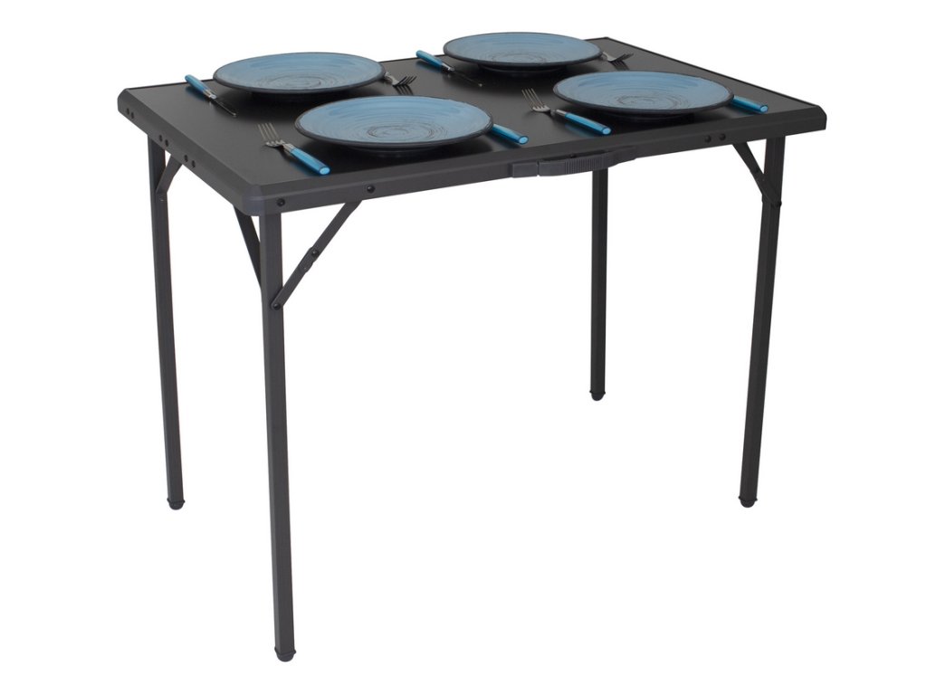 Při plném rozložení poskytuje pracovní plochu 90 × 60 cm ve výšce 70 cm – ideální pro přípravu jídla, společné stolování nebo jako praktická pracovní plocha v přírodě. S nosností až 50 kg unesete bez problémů nádobí, přenosný vařič i vše, co k pohodlnému kempaření potřebujete.