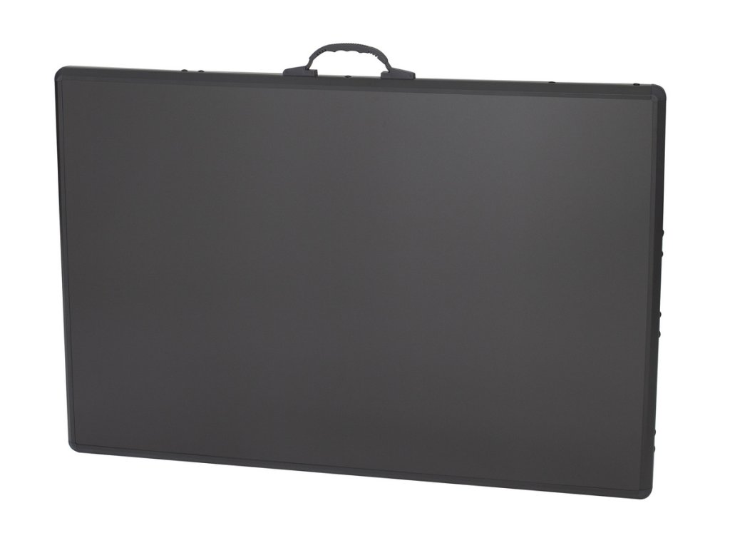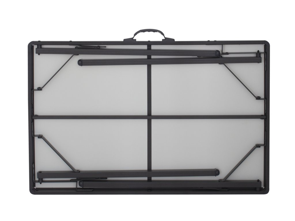 Po složení má stůl kompaktní rozměry 90 × 60 × 7 cm, což usnadňuje skladování v autě, karavanu nebo v garáži. Nízká hmotnost 4,6 kg a integrovaná rukojeť z něj dělají ideální volbu pro všechny, kdo hledají praktické a mobilní řešení bez kompromisu na funkčnosti.