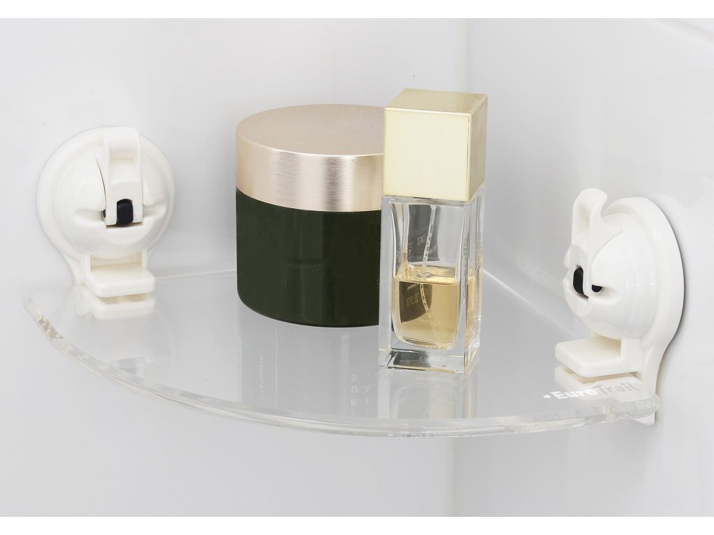 Snadná instalace bez vrtání: Eurotrail rohová polička se snadno připevní pomocí přísavek na jakýkoli hladký povrch. Žádné vrtání, šrouby ani jiné nástroje – polička bude na svém místě za několik sekund. Přísavky poskytují silné a bezpečné uchycení, takže se nemusíte obávat její stability.