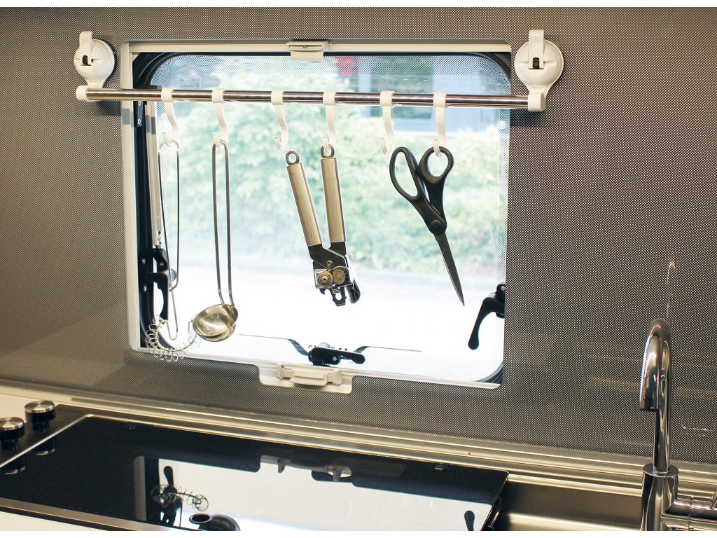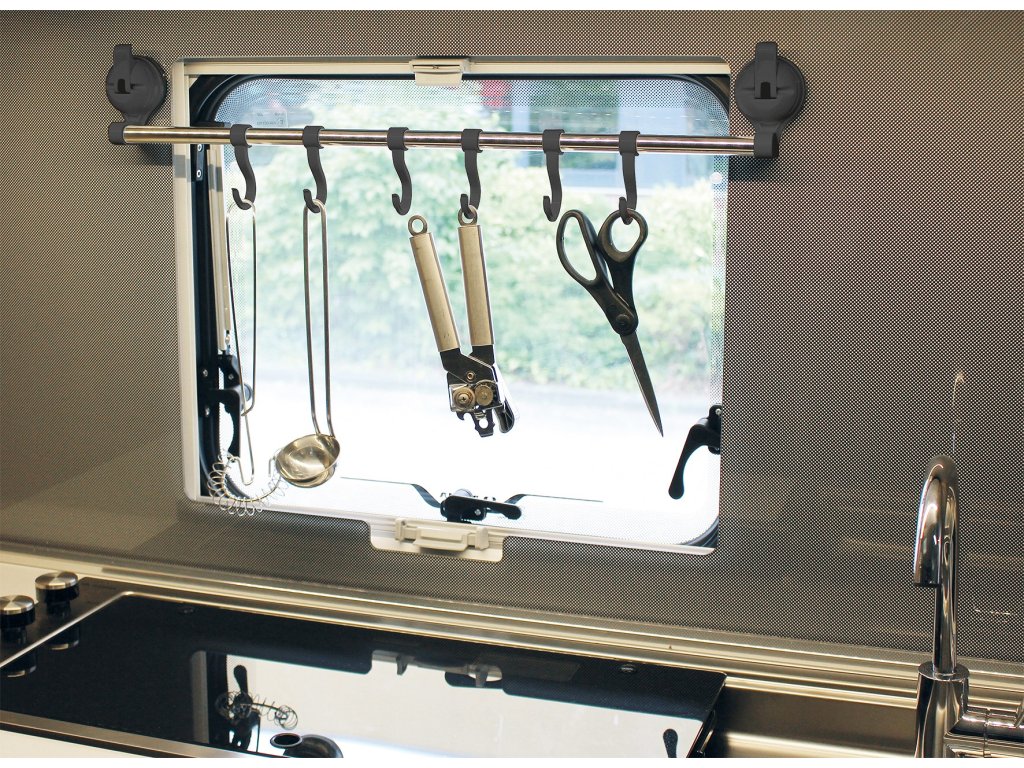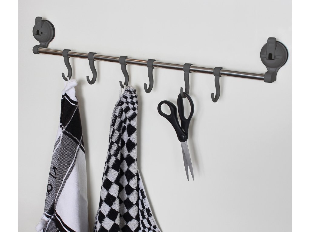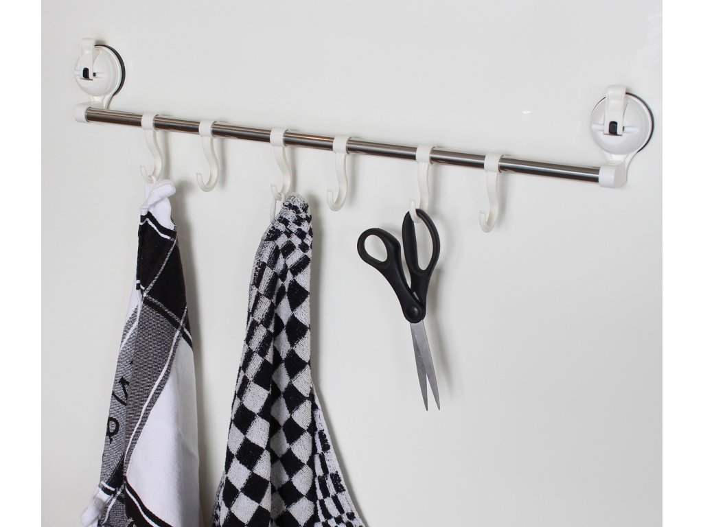 Praktická a prostorná konstrukce: Na tyči je umístěno 6 háčků, což poskytuje dostatek místa pro zavěšení různých předmětů. Tento věšák s přísavkami je ideální pro ručníky, kabelky, klíče, oblečení nebo i drobné kuchyňské potřeby. Rovnoměrné rozložení váhy mezi háčky zajišťuje stabilitu i při větším zatížení.