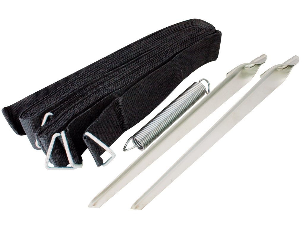 Kompletní sada: Kromě popruhu získáte také kolíky, pružiny a skladovací obal, což zaručuje kompletní řešení pro uchycení stanu proti větru.