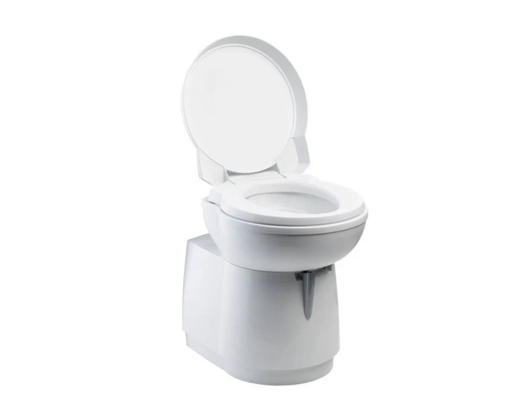 Toaleta se skládá ze dvou částí – pevně zabudovaného WC a odnímatelné kazetové nádrže o objemu 17,5 litru. Nádrž lze jednoduše vyjmout přes horizontální servisní klapku 3 (prodává se samostatně), která je přístupná zvenčí vozidla.