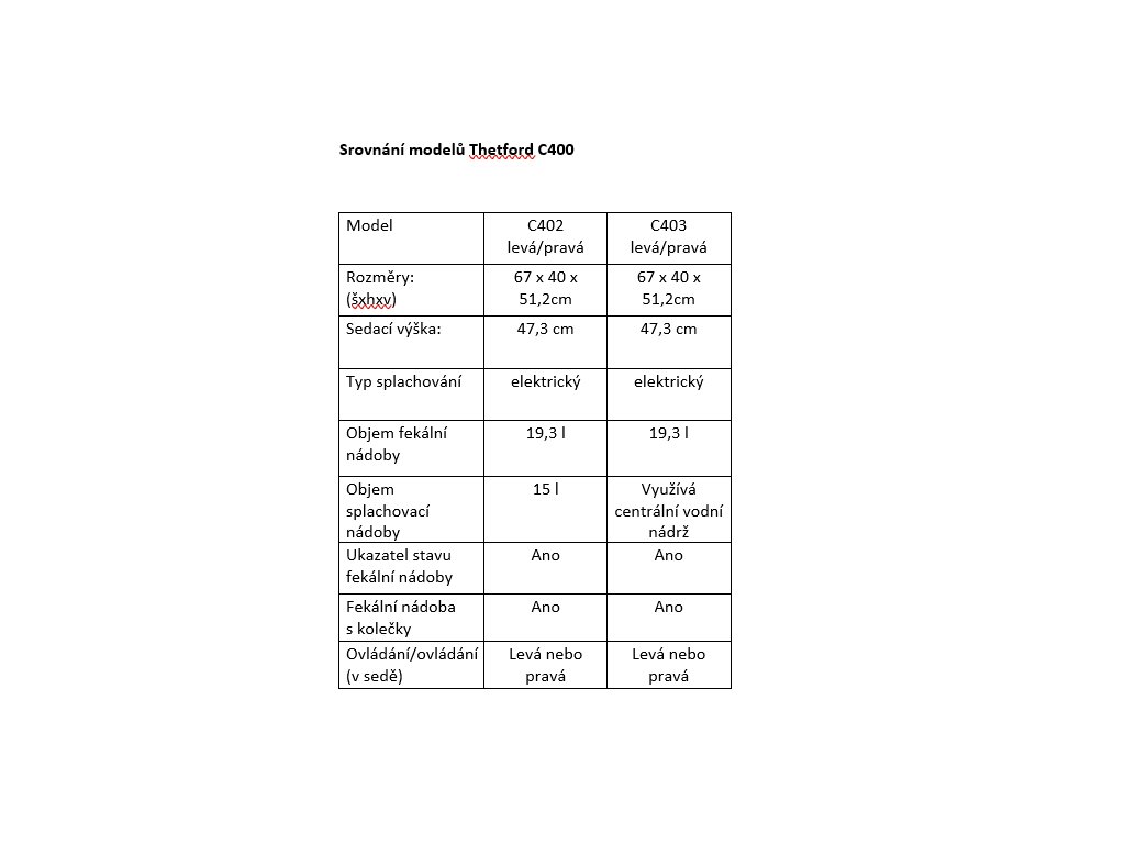 Hlavní výhody modelu Thetford C403-L:
