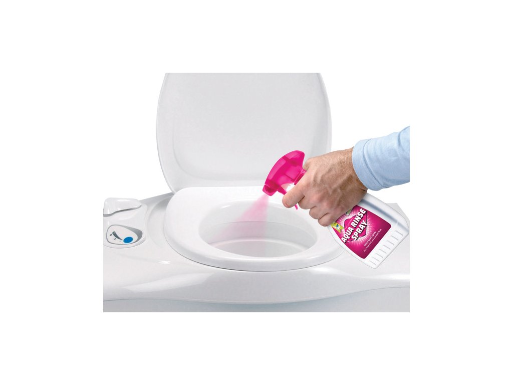 AQUA RINSE SPRAY – ideální produkt pro karavany s centrální vodní nádrží. Čtěte návod na použití. Nepoškozuje odpadní nádrž (test ISO 11734). Produkt je použitelný pro plastové i keramické toalety. Pokryje povrch toaletní mísy ochrannou vrstvou, která zajišťuje svěží vůni, která zůstává na toaletě dlouho po použití. Po použití tohoto prostředku není nutno tak často splachovat, ušetří tedy spotřebu vody. Perfektně kompatibilní s Toilet Bowl Cleaner.