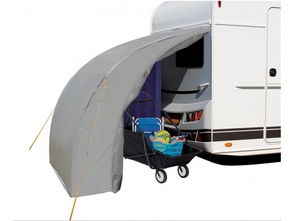 Velikost pro různé potřeby: Půdorys přístřešku je 170 x 190 cm, což poskytuje dostatek prostoru pro uschování vašich věcí, jako jsou kola, skládací stoly, židle nebo další karavanové vybavení. Tato velikost je dostatečně prostorná, aby splnila vaše potřeby, ale zároveň dostatečně kompaktní, aby se snadno vešla do prostoru vašeho karavanu.