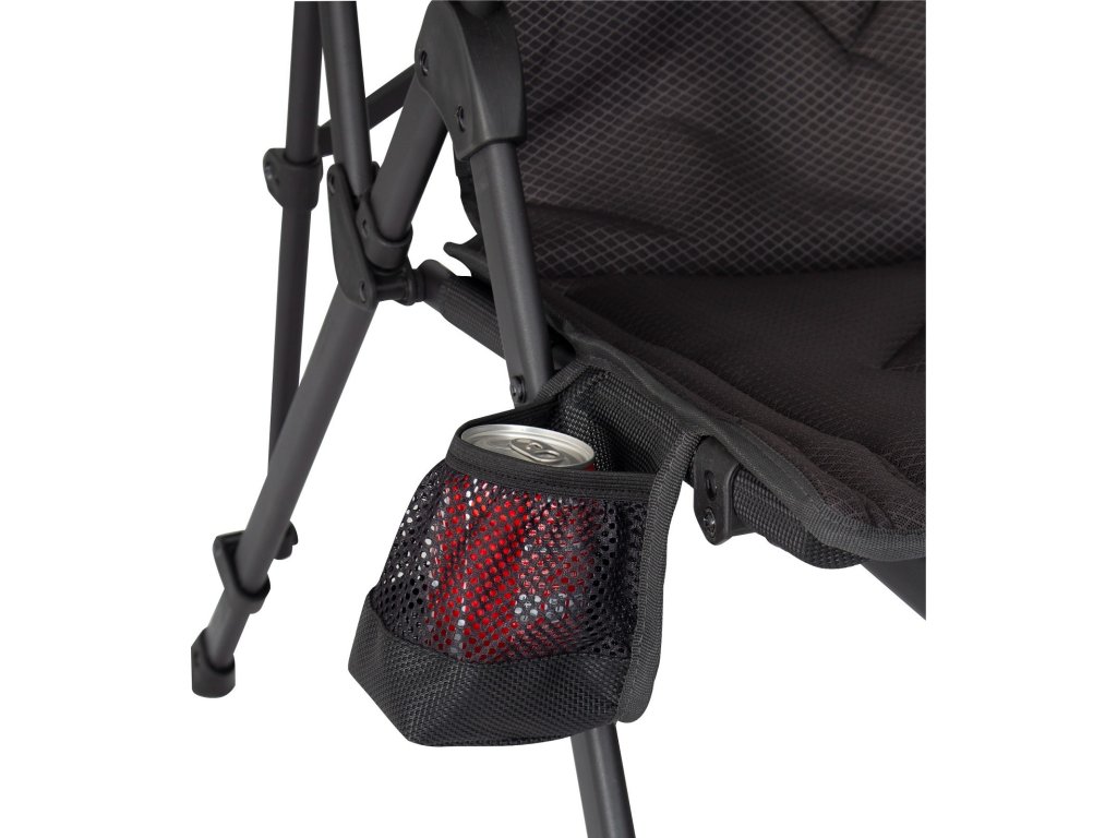 Skládací židle je vybavena praktickým bezpečnostním zámkem, který zajistí, že židle zůstane stabilní i v nastavené poloze. Tato funkce přispívá k vaší bezpečnosti a pohodlí, zejména při relaxaci v poloze se opřenými zády. Další užitečnou funkcí je držák na láhev, který vám umožní mít svůj oblíbený nápoj vždy po ruce. Užijte si skvělé chvíle odpočinku bez obav o to, kde odložíte lahev s nápojem.